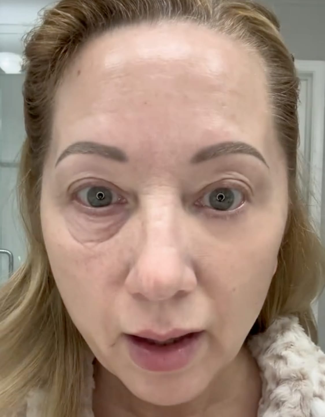 Deja que el producto se seque durante 3 a 5 minutos, manteniendo el rostro sin expresión —sin entrecerrar los ojos ni sonreír—.