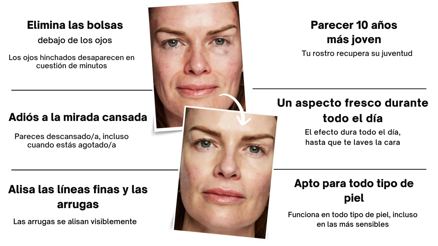 El 100 % de las usuarias notó una mejora en la apariencia de las bolsas en solo 3 minutos (estudio clínico realizado en 25 mujeres de entre 36 y 65 años).